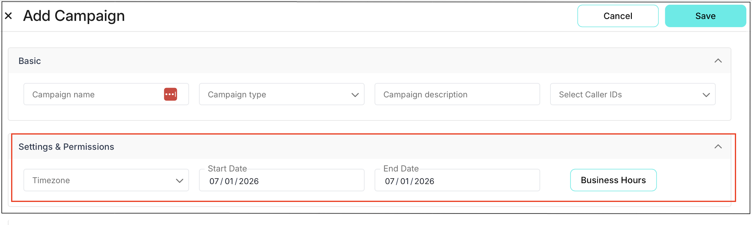 Once all details are configured, click Save to activate the campaign or Cancel to discard changes.