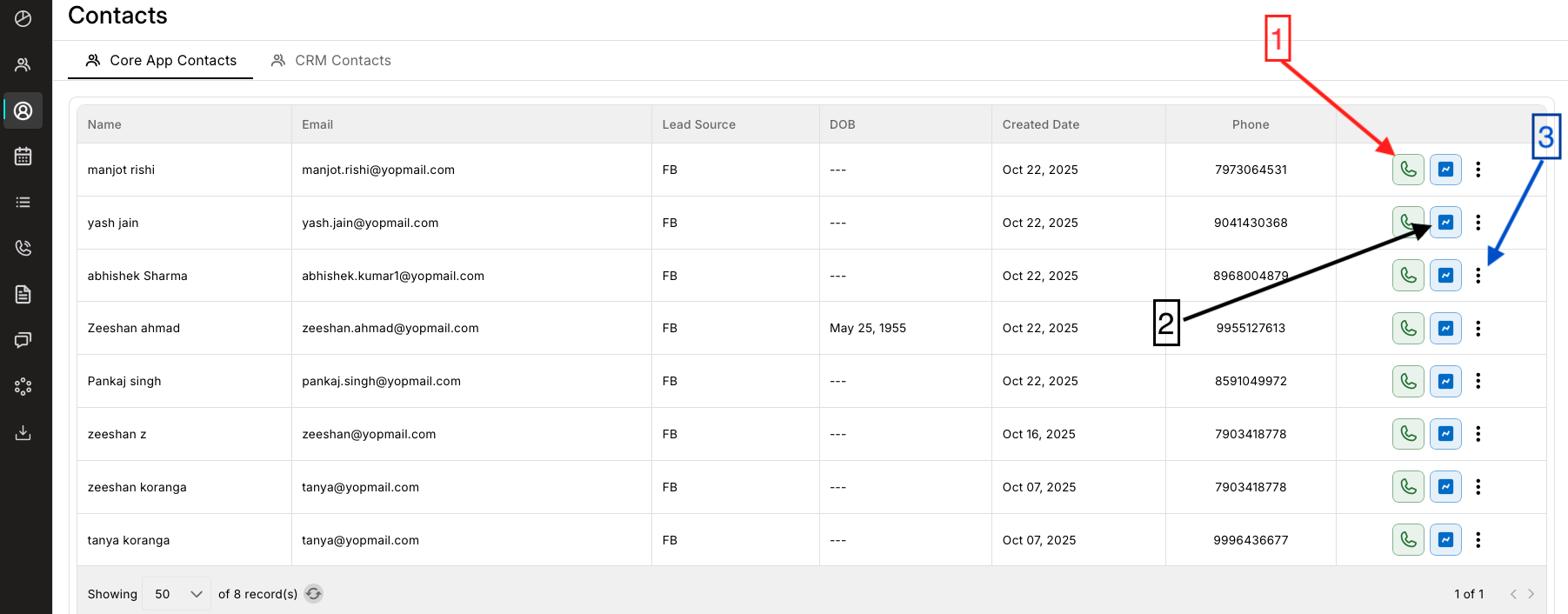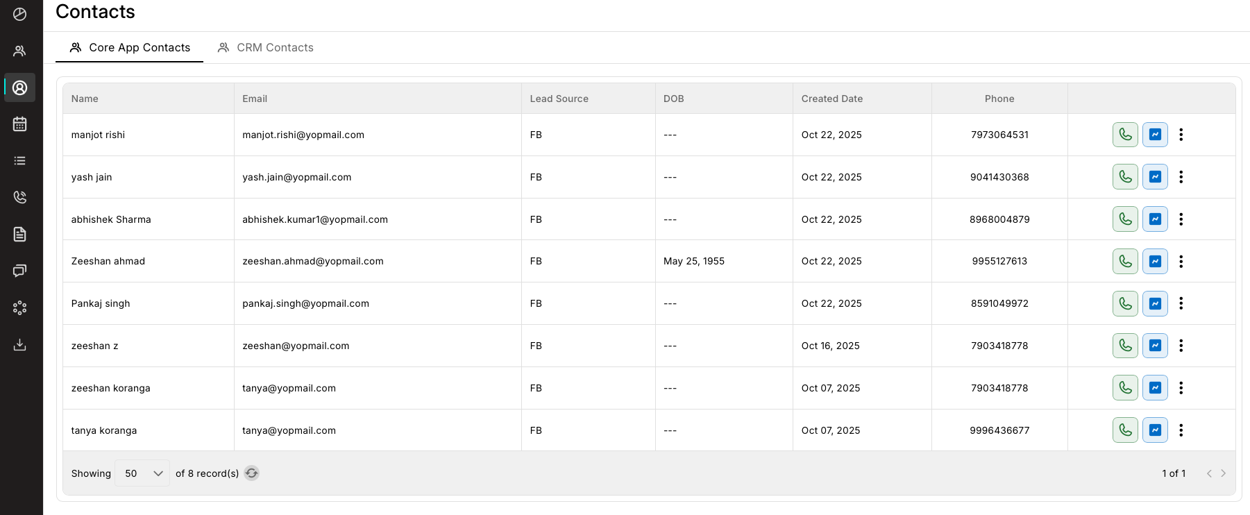 o Core App Contacts: A Core lead refers to an agent — someone who wants to join the organisation or work under agency hierarchy.