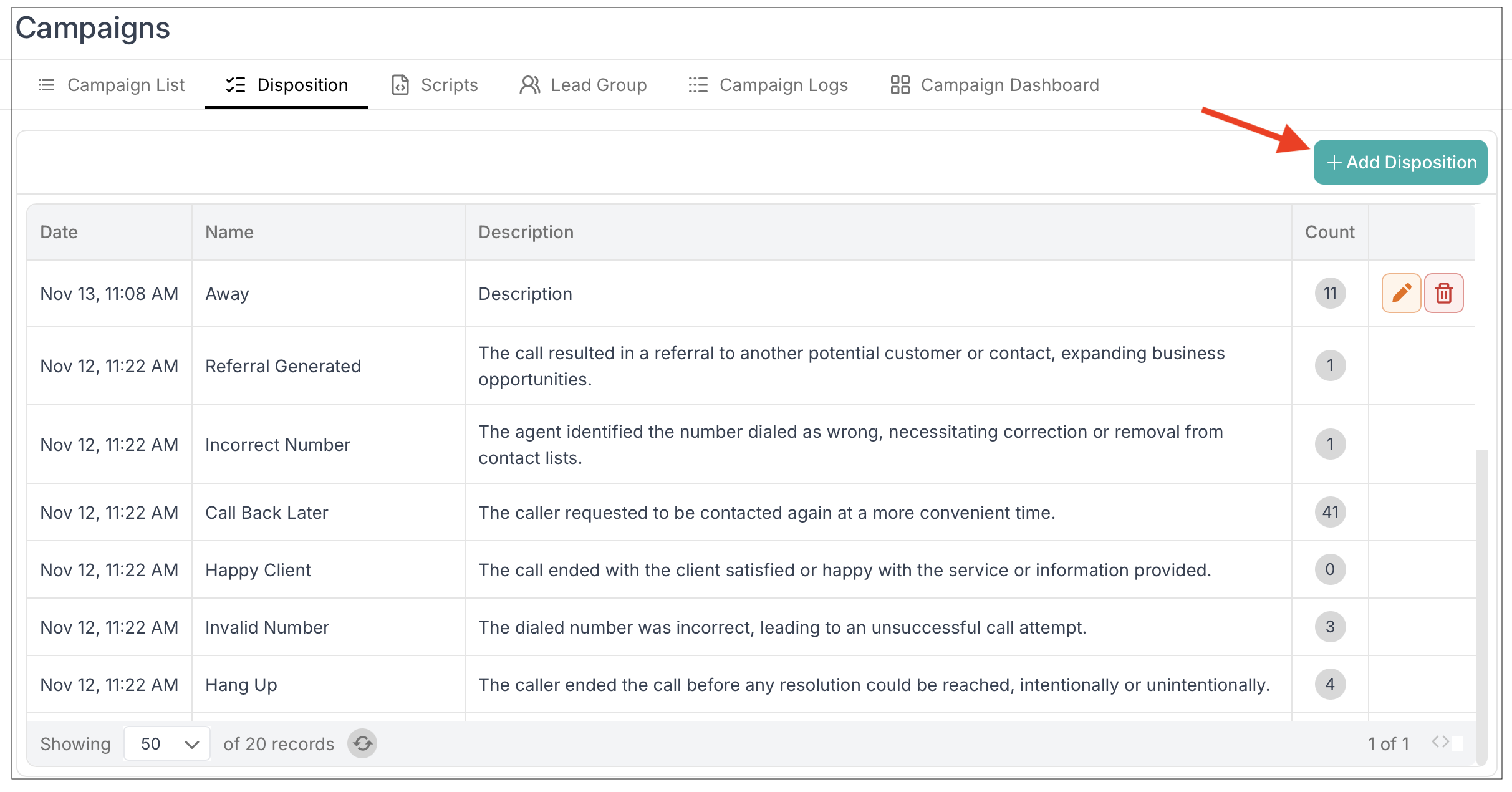 Dispositions allow you to categorize and track the outcome of every call made during a campaign. By configuring dispositions correctly, teams can maintain accurate call results, improve follow-ups, and generate meaningful performance reports.
