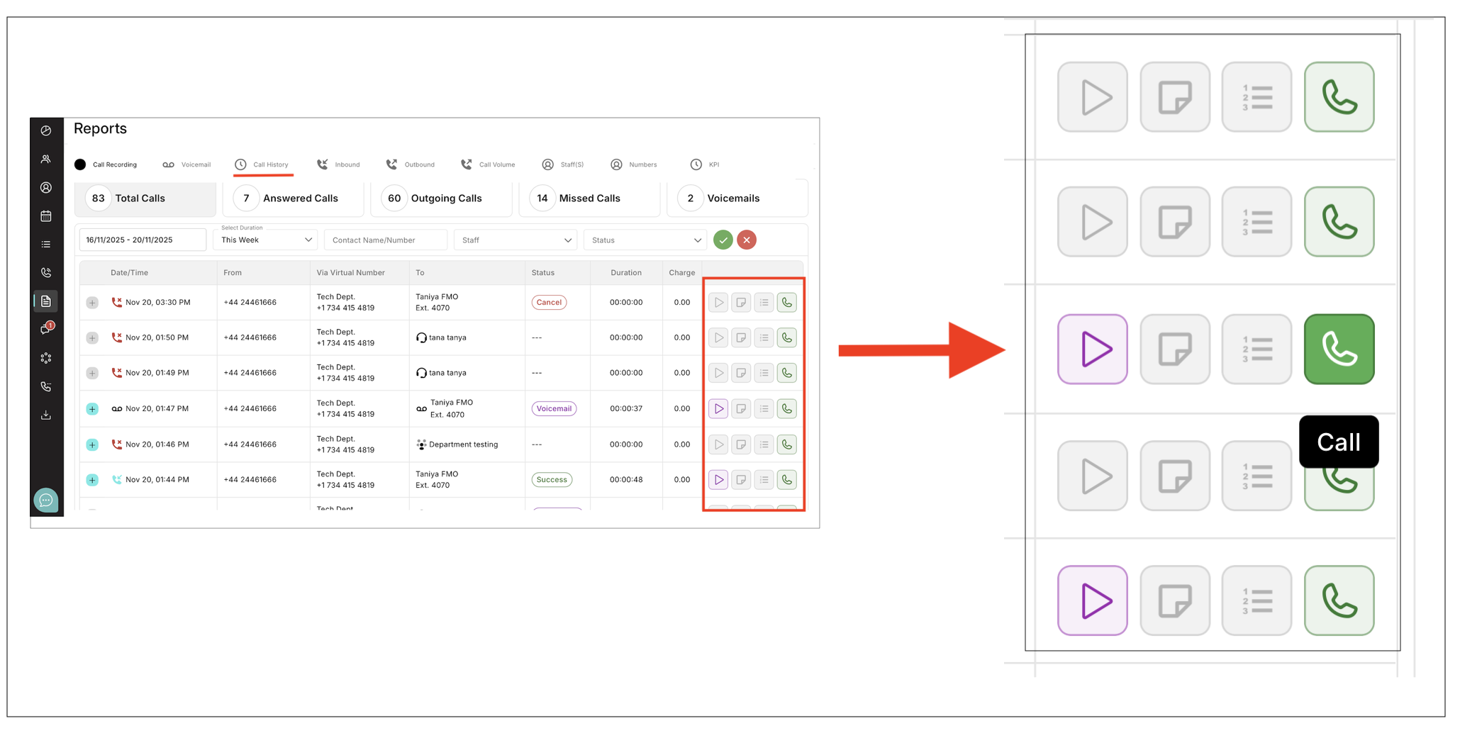 Support Efficiency: Quickly find missed calls and voicemails for timely follow-up.