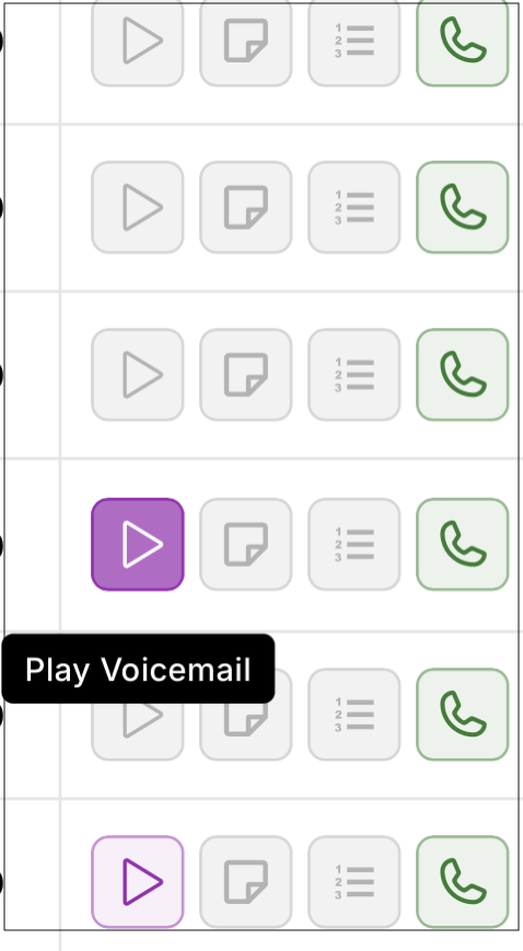 Provides controls to play voicemail messages or access more details.